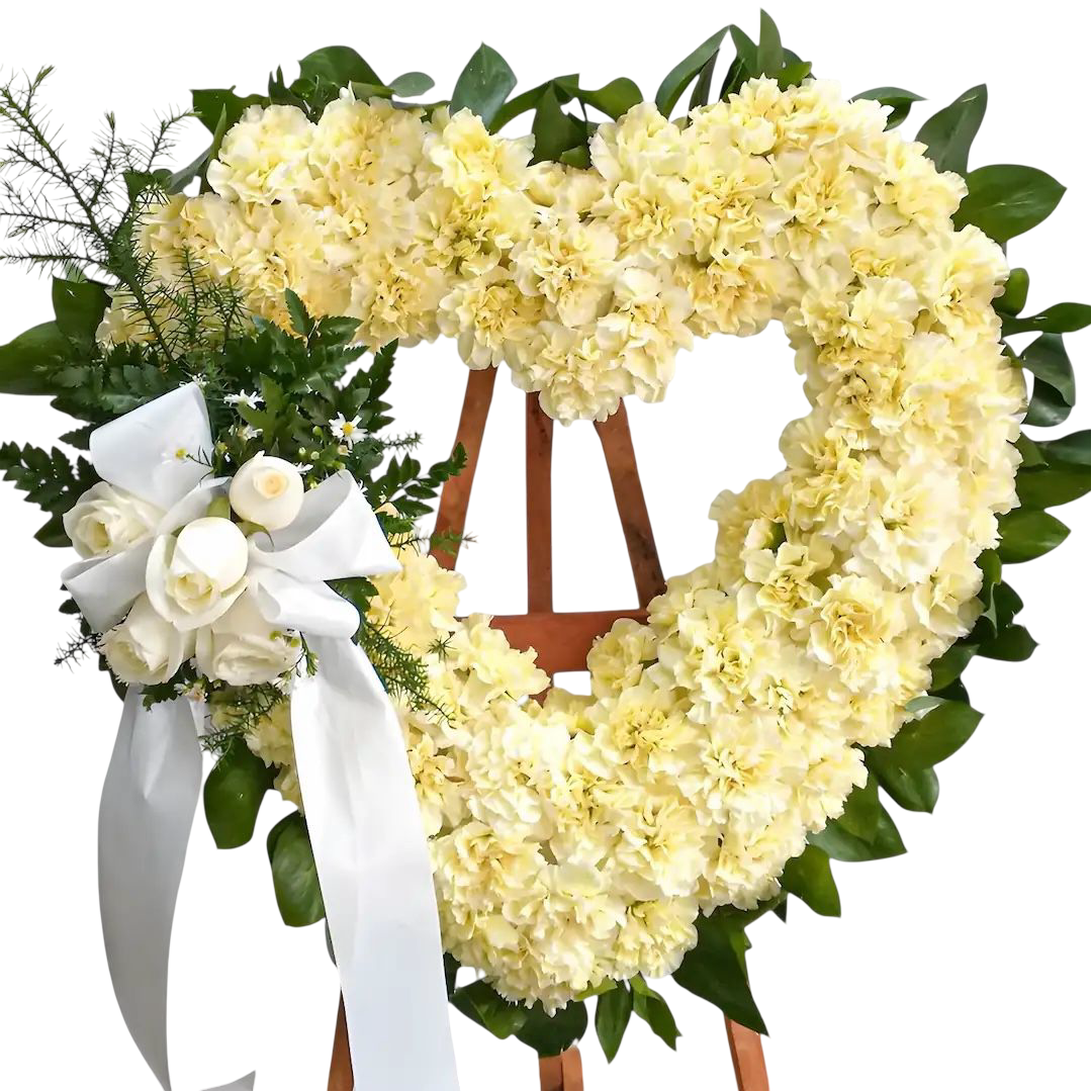 Hermosa corona fúnebre elaborado con claveles y flores surtidas