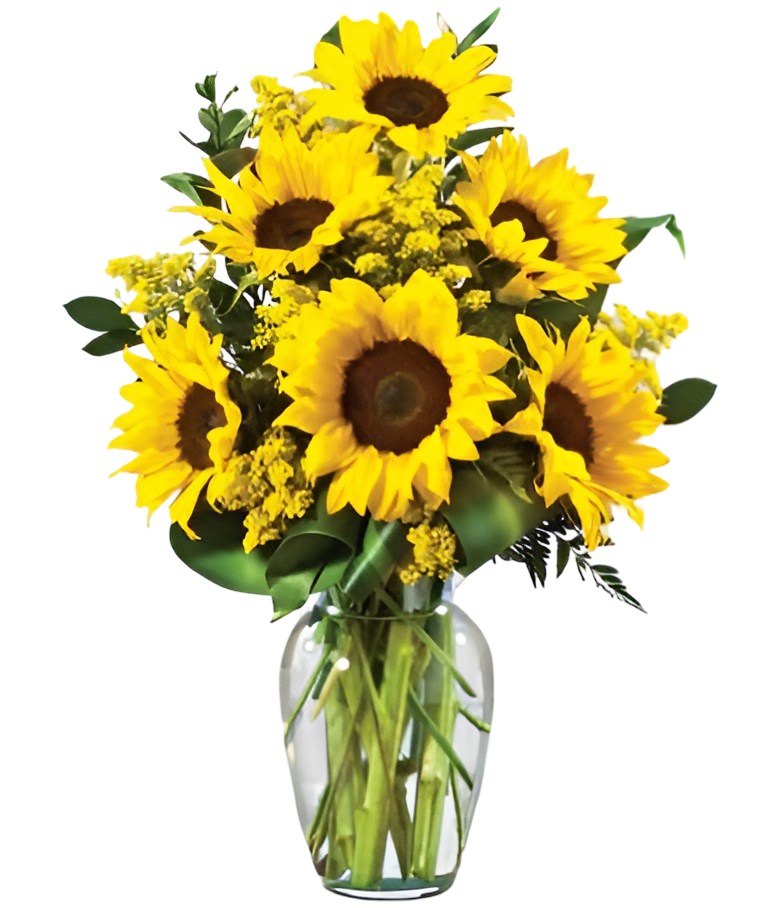 Hermoso Florero Con Girasoles, Drasena y Soliaster